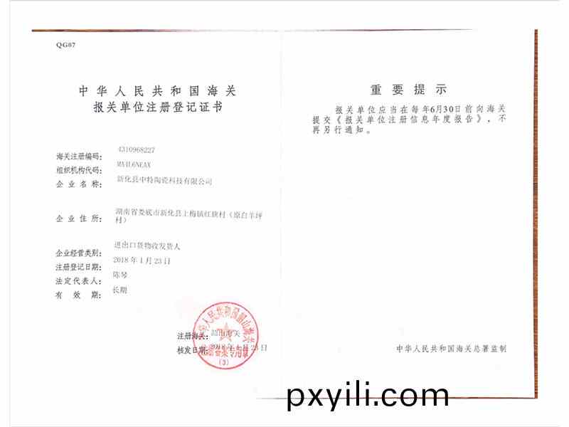 海關(guān)(guan)註(zhu)冊登(deng)記證(zheng)書